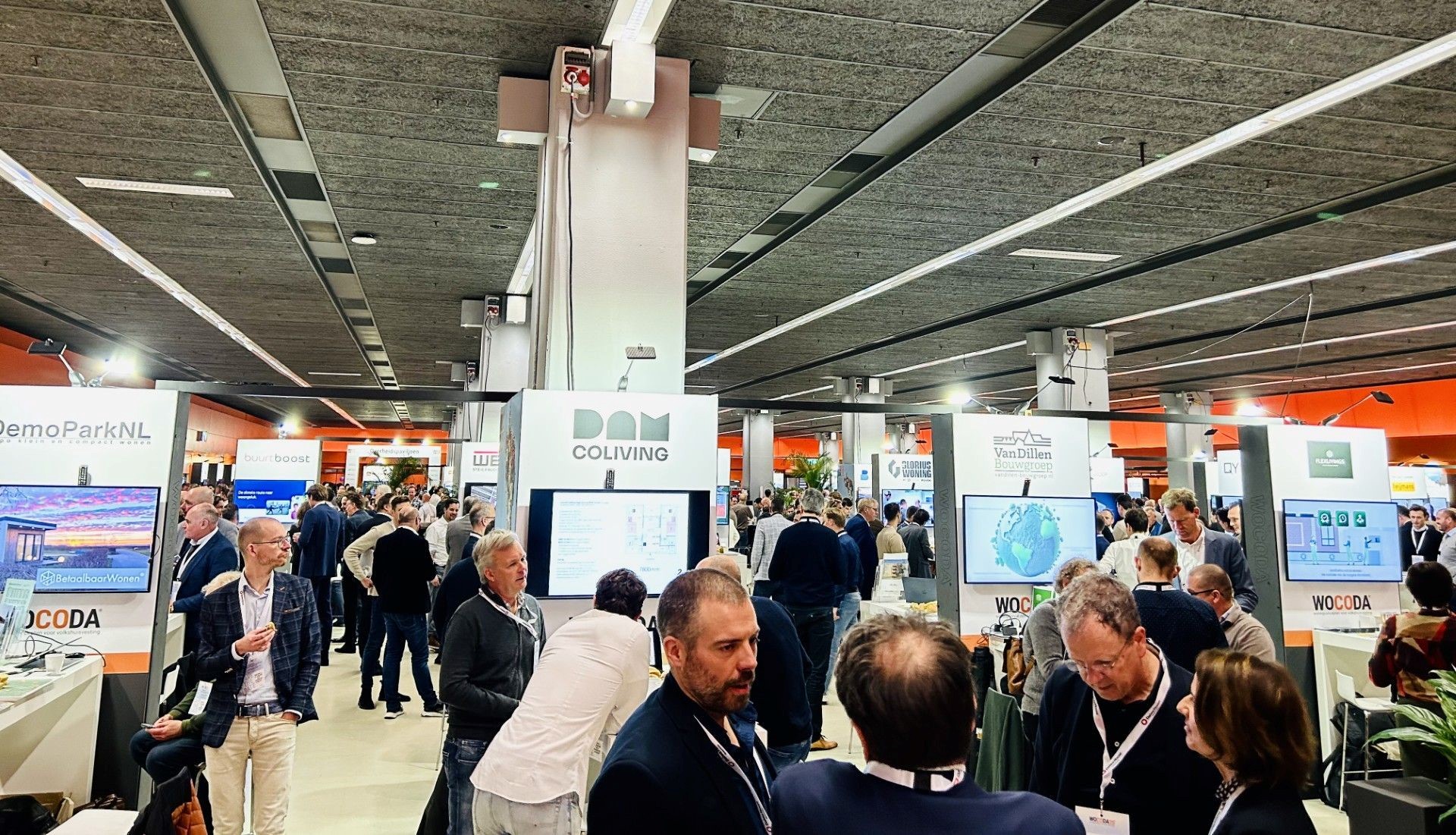 Wat opvalt bij WOCODA is de uniforme standbouw. Geen torenhoge stands of podiumachtige kamers, wel presentatietafels langs de gangpaden. Voor iedereen geldt hetzelfde. John: “Achter de komma is iedereen hier gelijk. Dat is ook een teken van het gelijkheidsbeginsel. We willen niet dat grote partijen met miljardenomzet de boventoon voeren. Ons doel is dat alle partijen in Nederland binnen de volkshuisvesting aanwezig kunnen zijn. Ongeacht het marketingbudget.”