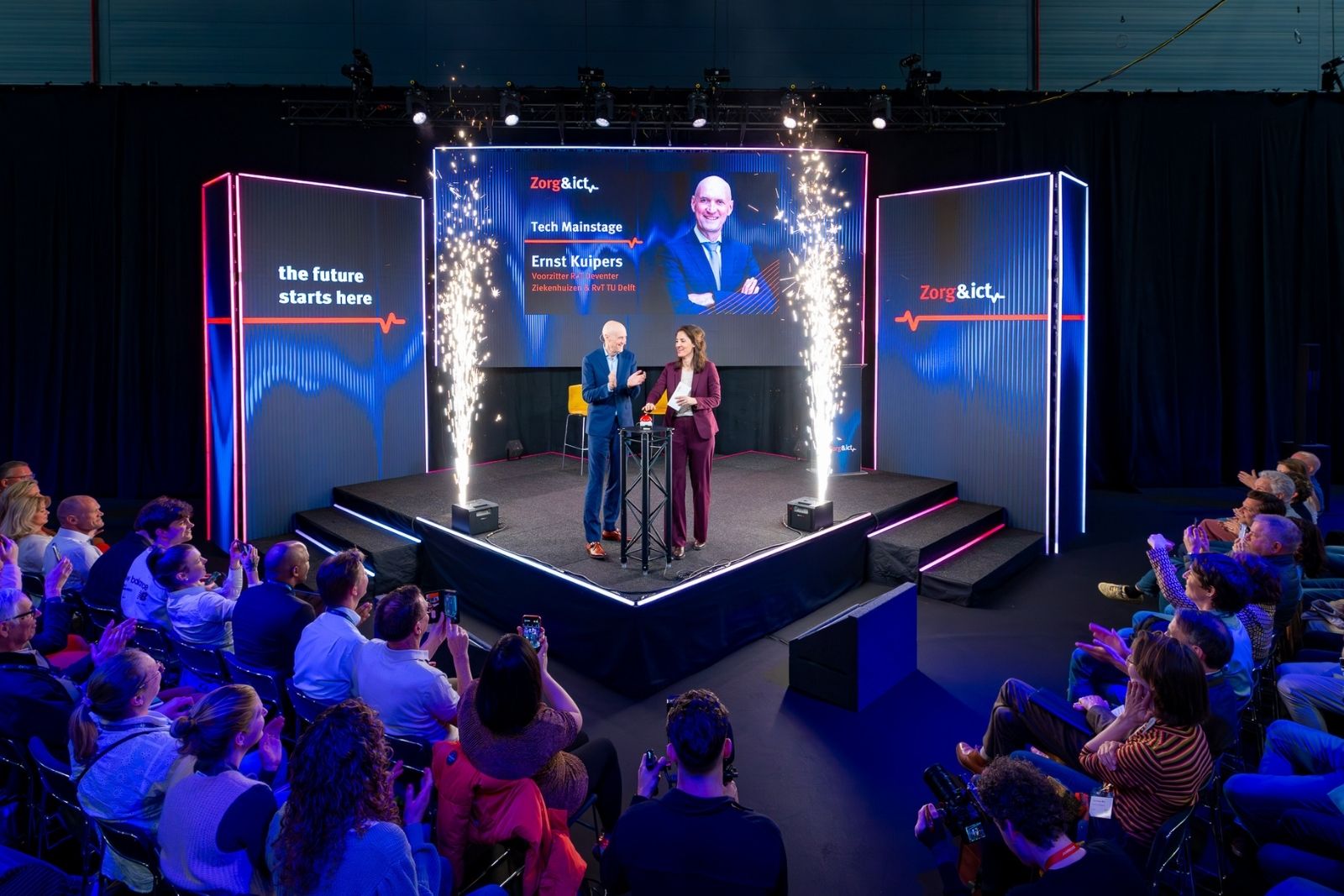Onder de noemer ‘The Future Starts Here’ kwamen actuele thema’s aan bod zoals kunstmatige intelligentie, cybersecurity, databeschikbaarheid, regionale samenwerking, voeding in de zorg, personeelstekorten en toekomstbestendige werkomgevingen.